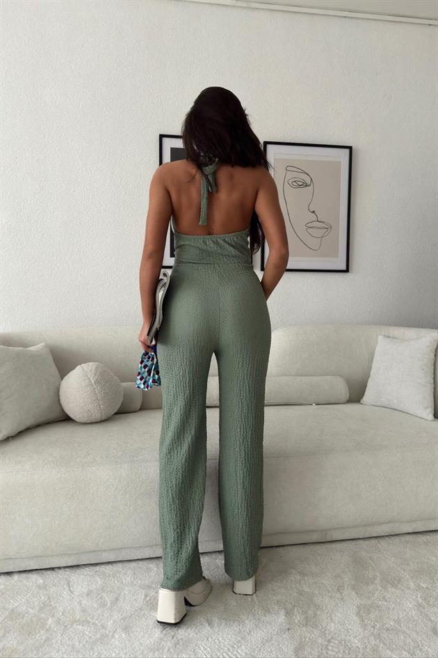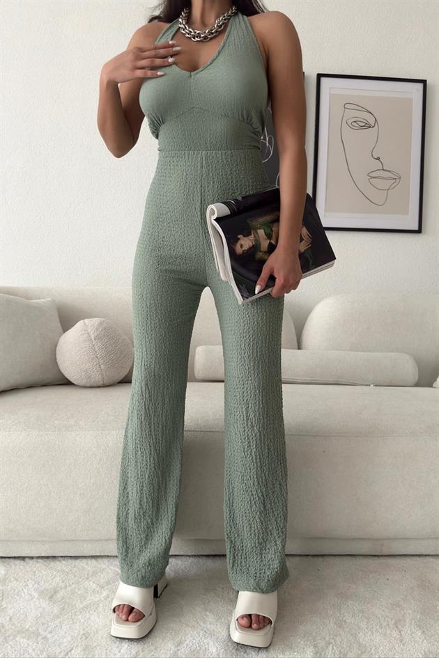 The Halterneck Gofre Jumpsuit model is one of the most popular pieces of the season. With the overalls models where you can discover the comfort of one piece, you can get rid of what to wear in the summer or winter season and add color to the new season.