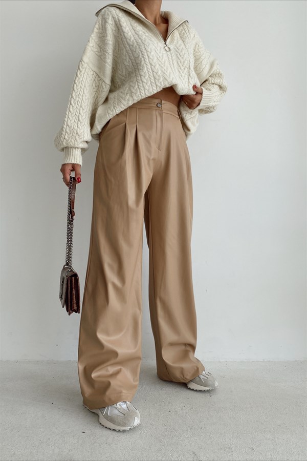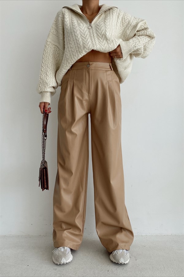 The trousers models that you can choose for office or daily wear will add elegance to your style. In the new season, you can add color to every day with the striking trousers models, and activate your combinations with the High Waist Leather Trousers model. The trousers models from the online catalog of Mylove boutique will be your favourite.