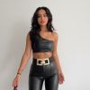 All the tops models you want to have, from the most stylish to the most sporty, are at Varo. An indispensable part of summer/winter, tops are an indispensable part of jackets, jeans and shirts. Tops models, including the One Shoulder Leather Crop Top model, have a special place in VaroFashion’s crop top catalog.