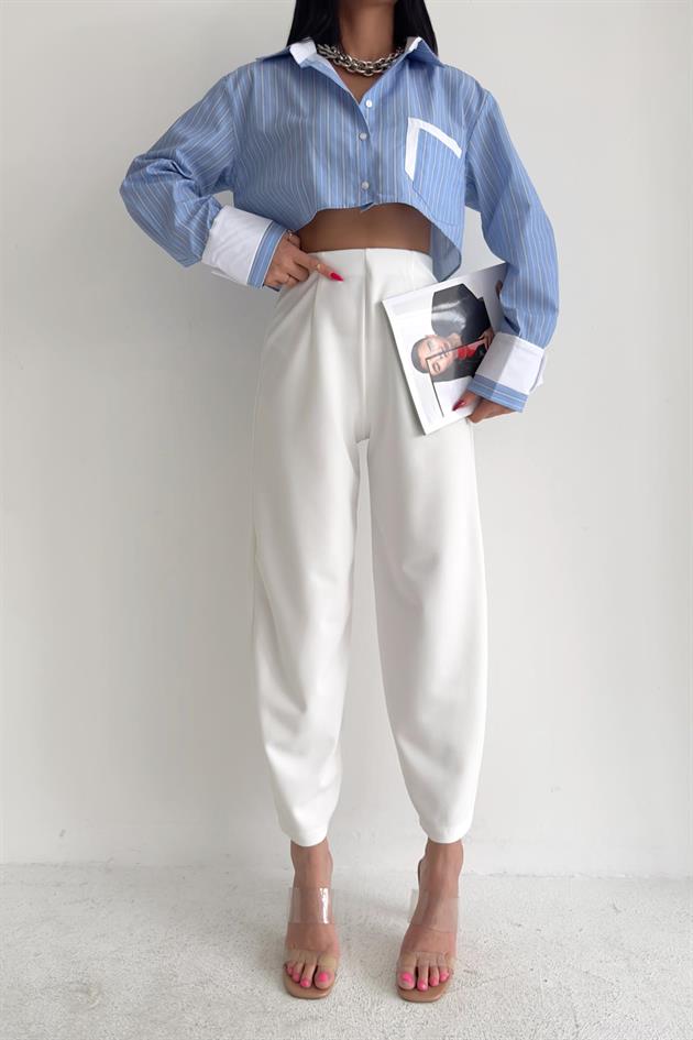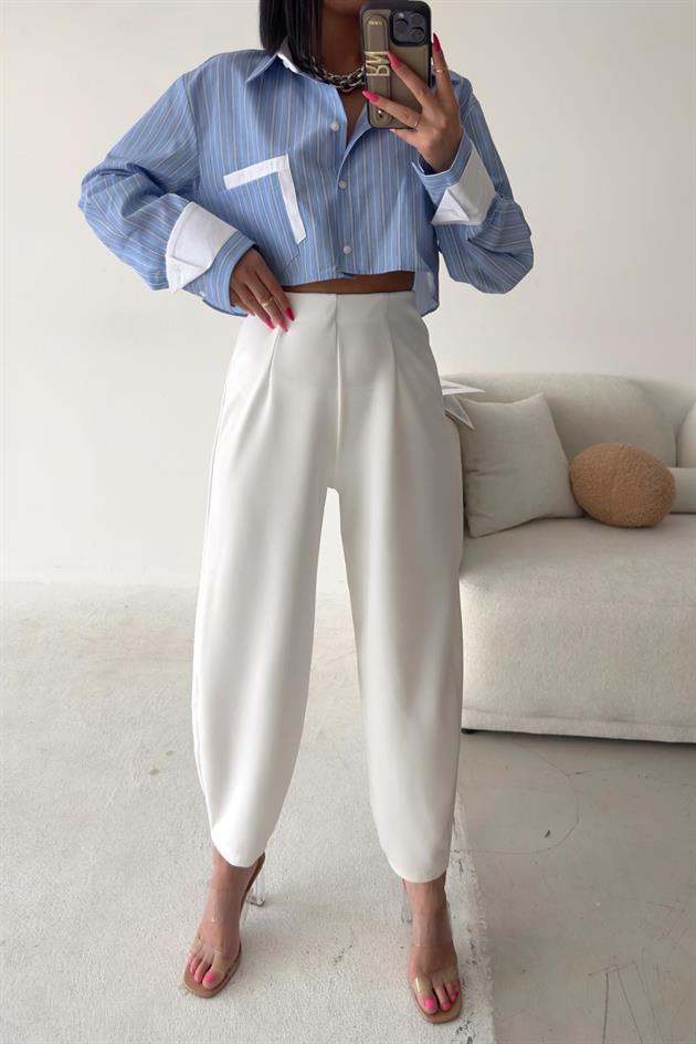 Pleated Carrot Fit Trousers White -11932 Categories: ,