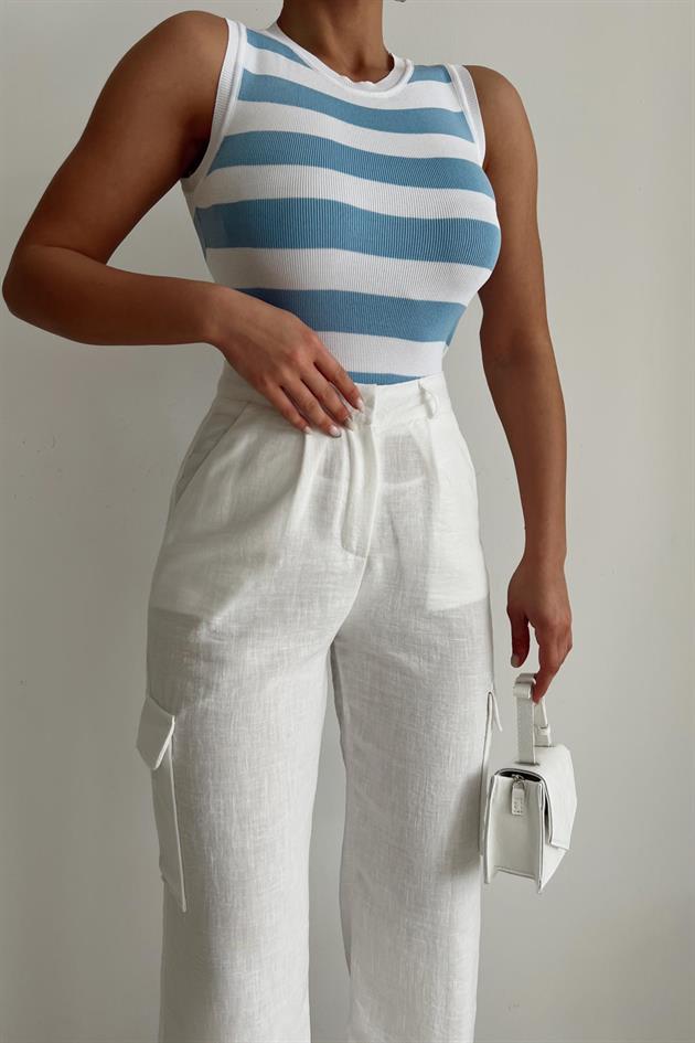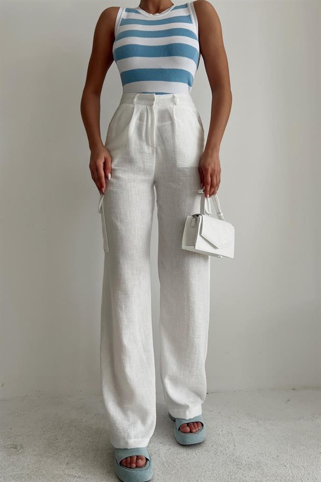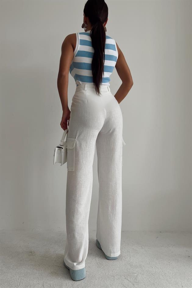Pleated Palazzo Trousers with Cargo Pockets White -11854 Categories: ,