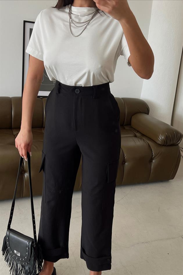 Side Pocket Detailed Trousers Black -11880 Categories: ,