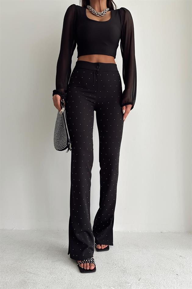 The trousers models that you can choose for office or daily wear will add elegance to your style. You can add color to every day with the striking trousers models in the new season, and activate your combinations with the Stone Slit Detail Trousers model. The trousers models from the online catalog of Mylove boutique will be your favourite.