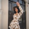 The V-Neck Flower Crepe Dress model is one of the most striking pieces of the new season. The dress you can choose with mini accessories will be your favourite. All eyes are on you with the dress models in the online catalog of Mylove boutique.