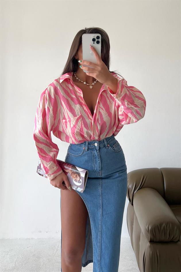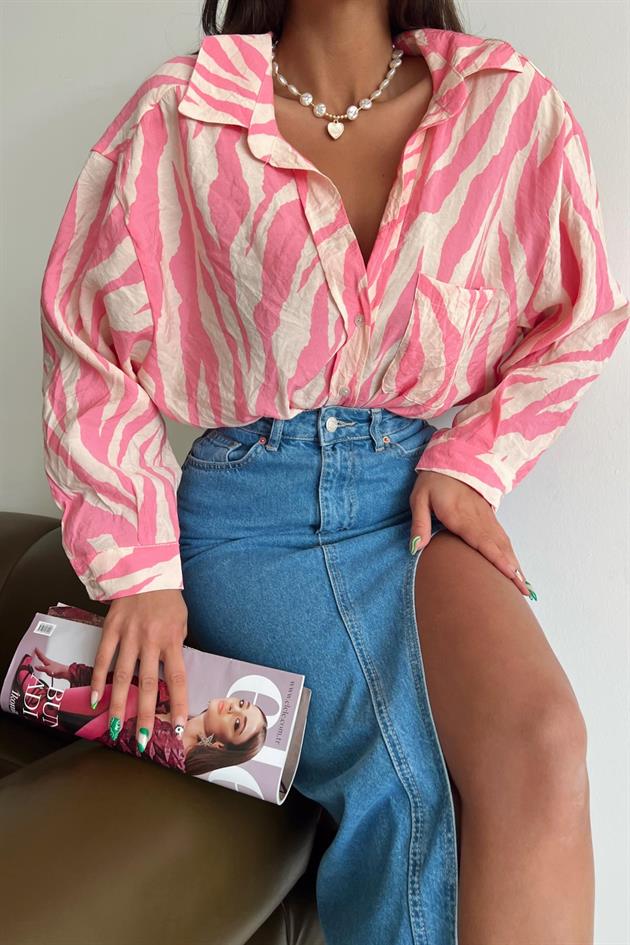Wild Pattern Loose Shirt Pink