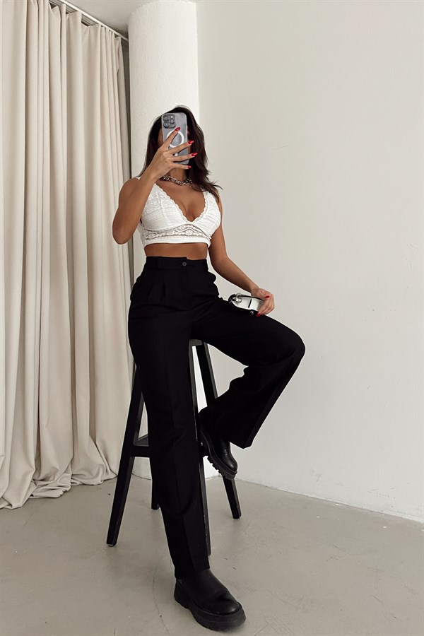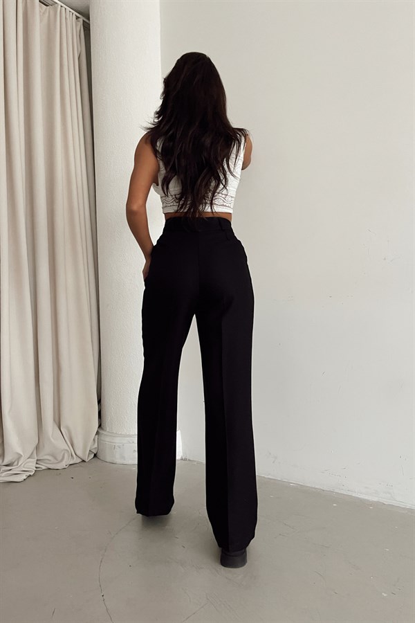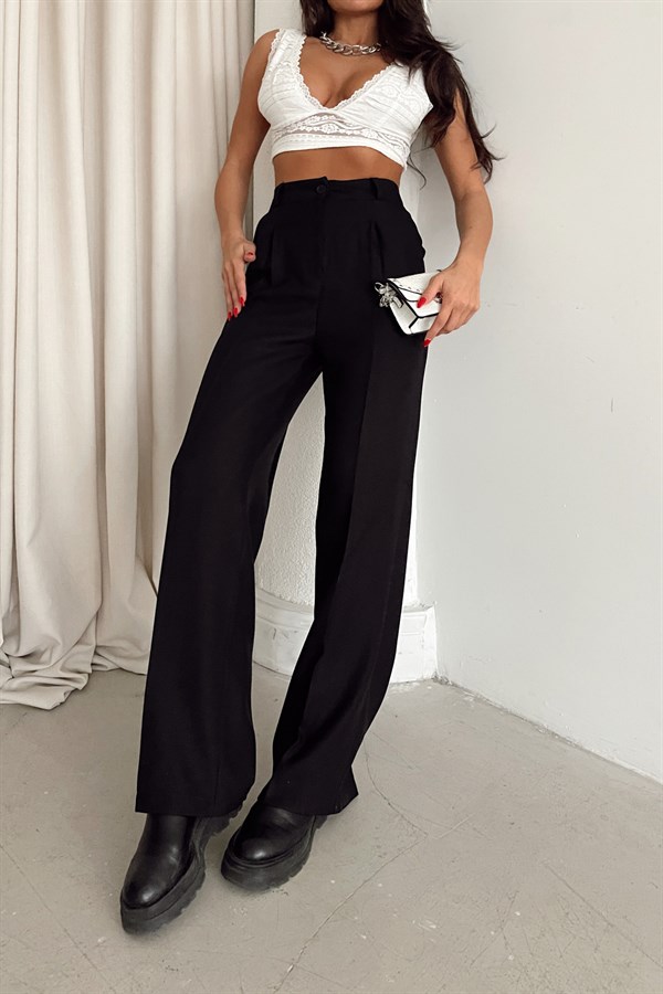 Wool Effect Palazzo Pleated Trousers Black -11796 Categories: ,